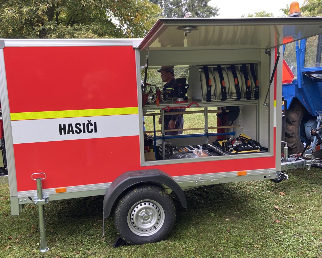 Na této akci byl našimi hasiči veřejnosti představen také nový přívěs pro hašení,